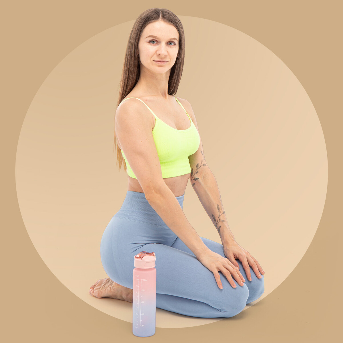 Исходное положение — стоя на коленях: голени прижаты к полу (можно подложить под них коврик), макушка тянется вверх.